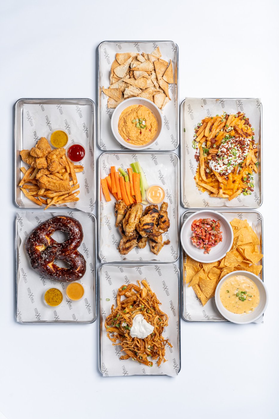 Hatch chile queso, red pepper hummus, hand-smashed guac, served with bottomless corn tortilla chips, and pita chips (V&GF)